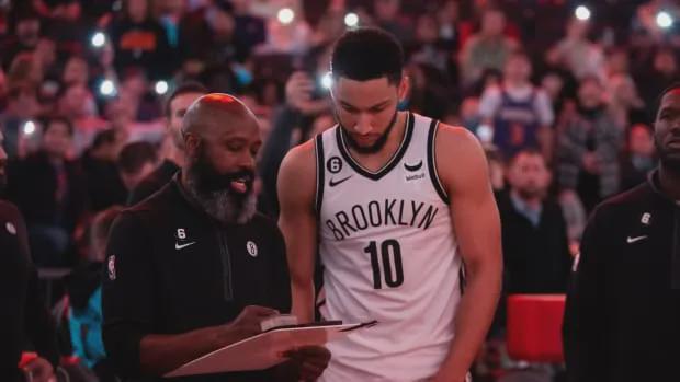 2022-23赛季,西蒙斯终于重回赛场,但还是不敢进攻,开季6场比赛里场均只有6.2分,率领篮网打出1胜5负的开局,直接导致时任篮网主帅纳什下课。